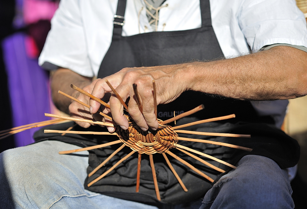 Ve vísce Camacha často uvidíte šikovné košíkáře při práci. Zručně ohýbají kolem rámu vrbové pruty zbavené kůry a zhotovují koše na prádlo nebo květináče.