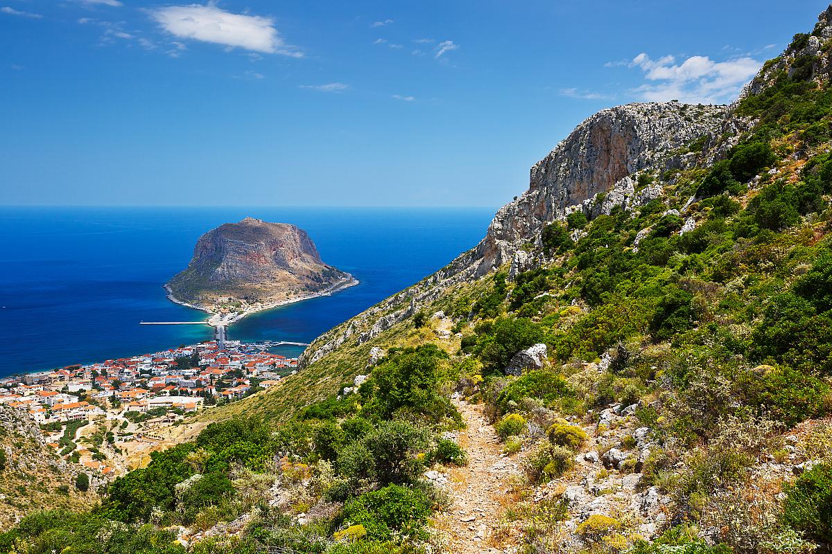 Okolí středověké Monemvasie patří díky panoramatu skalnaté hory k nejoriginálnějším v celém Řecku. Řada zdejších kamenných domů se sice změnila na ubytovací zařízení, avšak pořád zde zůstalo hodně z původní historické atmosféry. Užijí si tady především zájemci o aktivní dovolenou v místech, dosud jen minimálně zasažených turistickým ruchem.