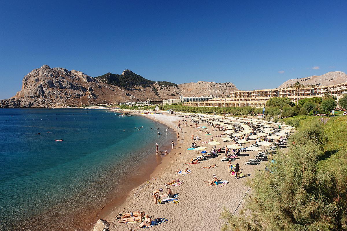 • Kolymbia, pláže u Středozemního moře Kolymbia, pláže u Středozemního moře
