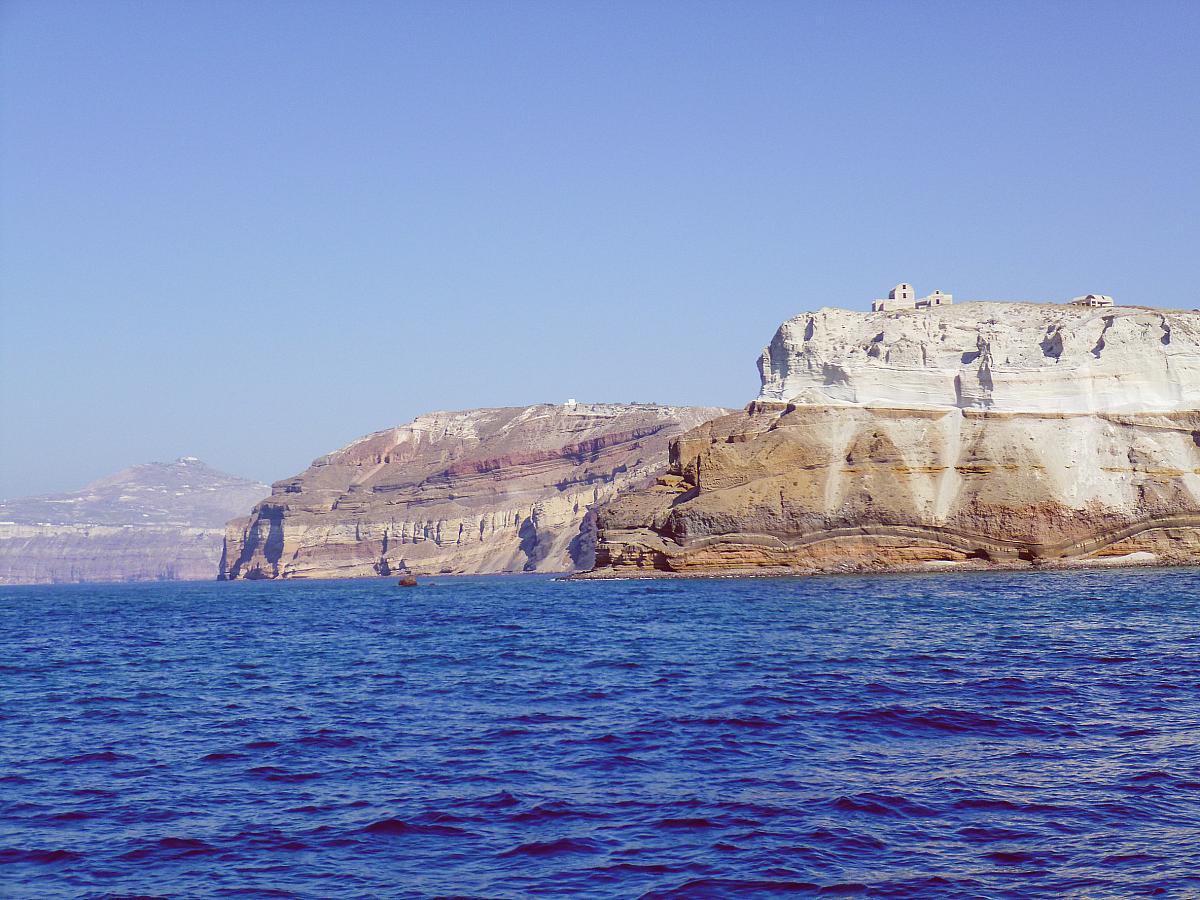 - rozvaliny staré Firy a jeskyně Zoodochos Pigis u letoviska Kamari.