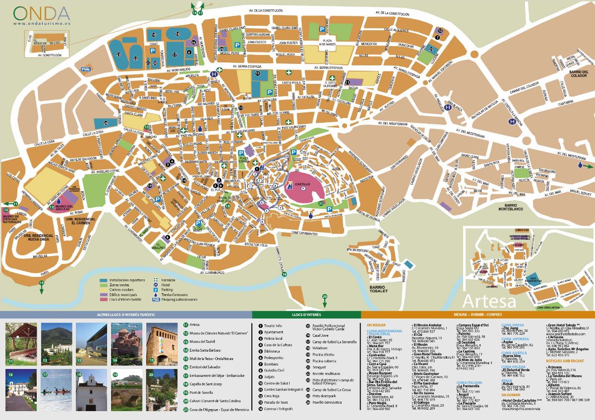 Pýchou města Onda je stejnojmenná pevnost, které se říkalo „Hrad tří set věží“ – údajně měla tolik věží, kolik je dní v roce. Do města se dobře dostanete, četná náměstí a parky zvou k odpočinku a spoustu zajímavých míst (zřícenina kláštera Santa Caterina, mlýn Poret, vodní nádrž Sichar atd.) najdete i v jeho okolí. Při toulkách křivolakými uličkami pod hradem můžete nakoupit v obchůdcích a pochutnat si na místních specialitách.