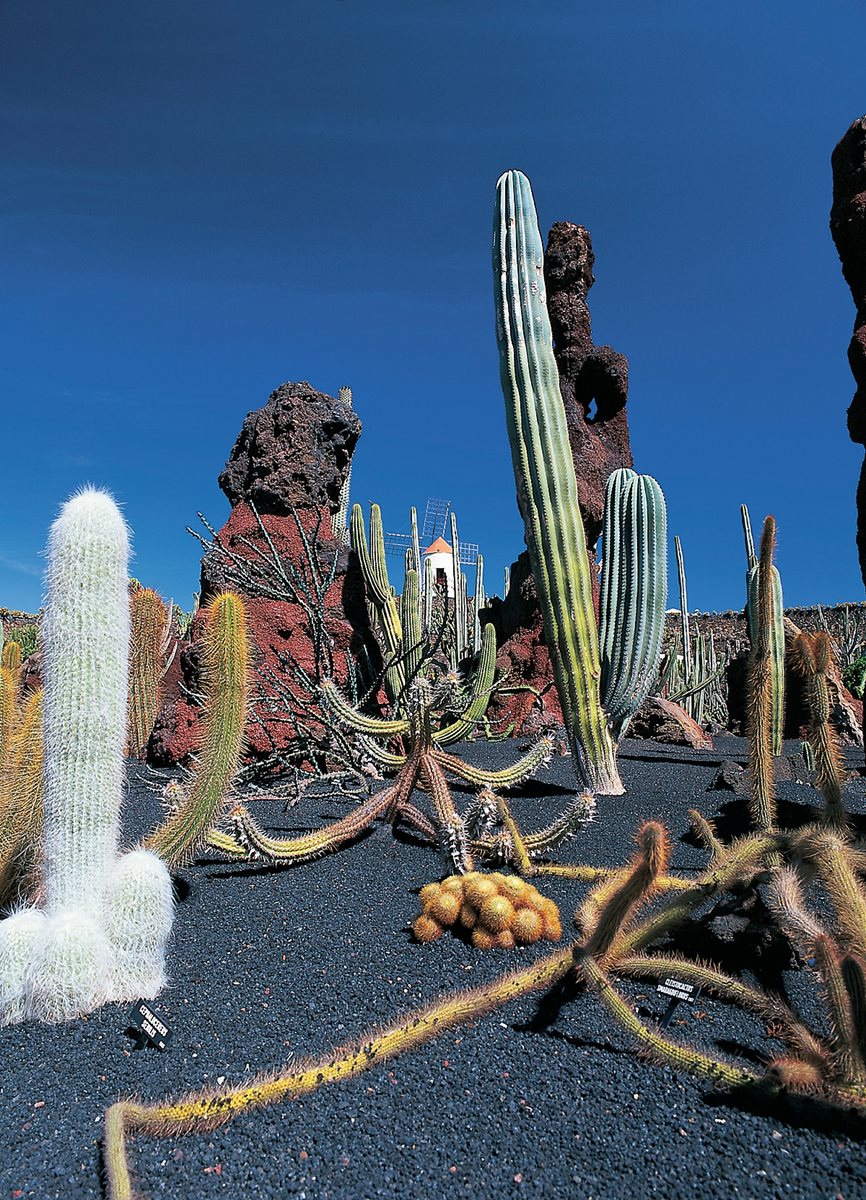 Toto unikátní prostředí pod kužely prastarých vulkánů vnuklo geniálnímu umělci Césaru Manriquemu (autor mnoha nádherných staveb po celém ostrově) nápad vystavět v této oblasti zahradu kaktusů. Pro více než 10 tisíc kaktusů z celého světa vybral místo ve zdejším mlýně.